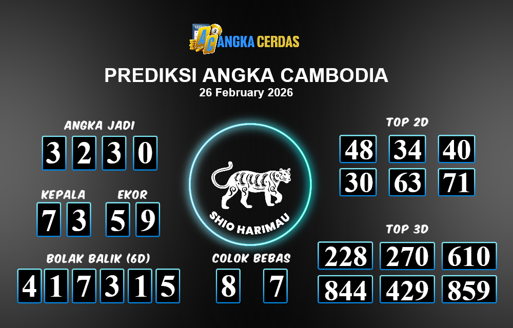 Prediksi Togel CAMBODIA untuk hari ini Kamis, 26 Februari 2026, adalah salah