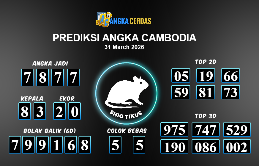Prediksi Togel CAMBODIAuntuk hari ini Selasa, 31 Maret 2026, adalah salah
