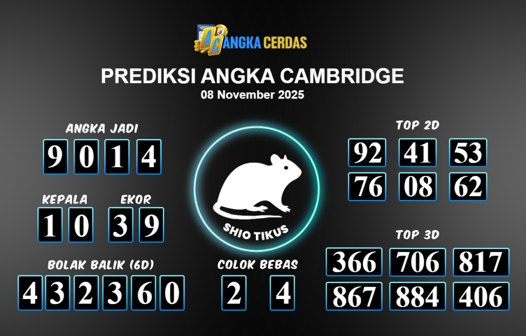 Prediksi Togel CAMBRIDGE untuk hari ini Jumat 07 November 2025, adalah salah
