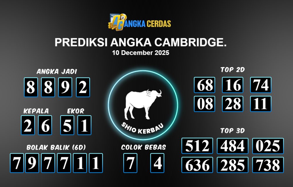 Prediksi Togel CAMBRIDGE untuk hari ini Rabu 10 Desember November 2025, adalah salah