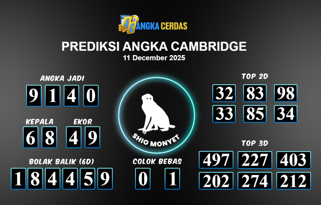 Prediksi Togel CAMBRIDGE untuk hari ini Kamis 11 Desember November 2025, adalah salah