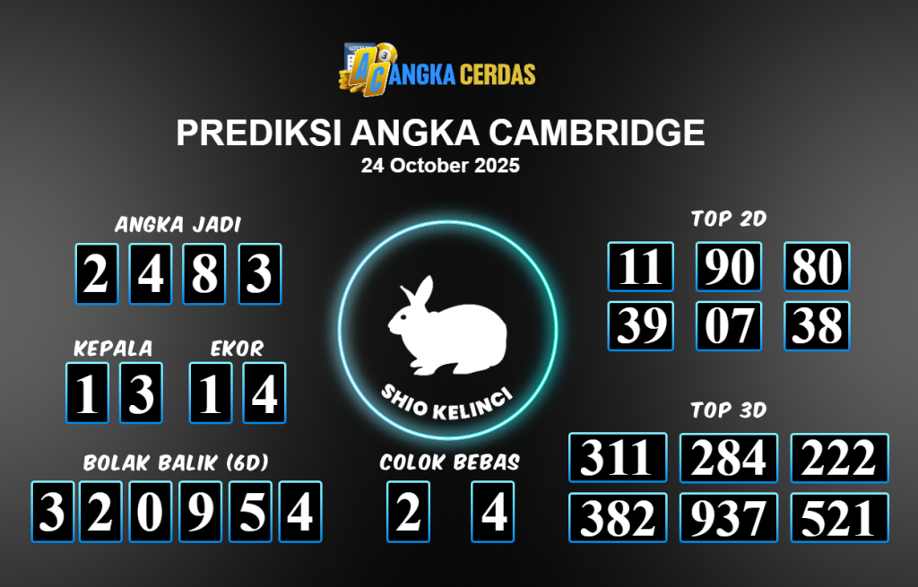 Prediksi Togel CAMBRIDGE untuk hari ini Jumat 24 Oktober 2025, adalah salah