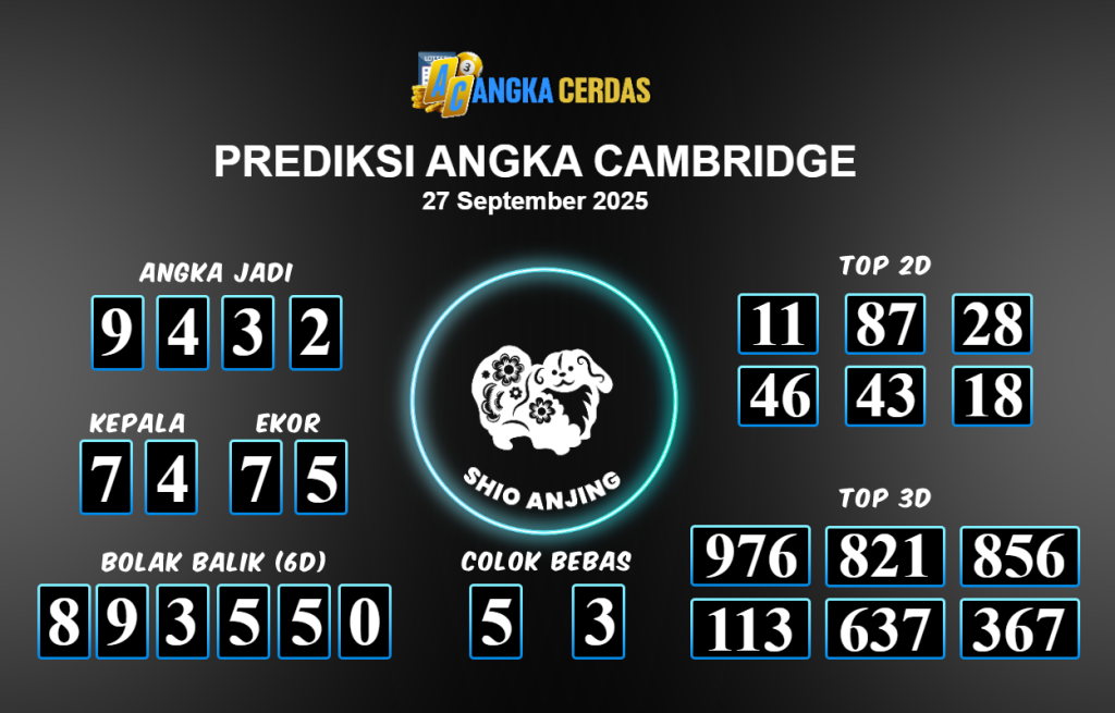 Angka Cerdas : Bocoran Prediksi Togel CAMBRIDGE Tanggal 27 September 2025