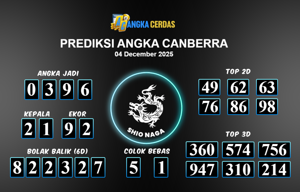 Prediksi Togel CANBERRA untuk hari ini Kamis 04 Desember November 2025, adalah salah