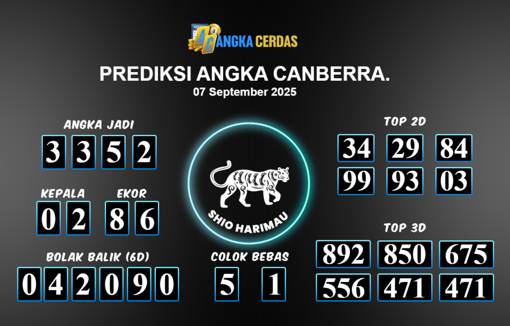 Prediksi Togel CANBERRA untuk hari ini Minggu 07 September 2025, adalah salah