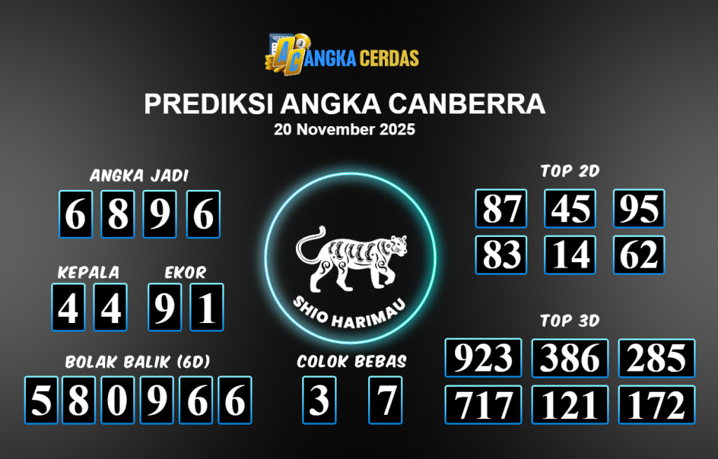 Prediksi Togel CANBERRA untuk hari ini Kamis 20 November 2025, adalah salah