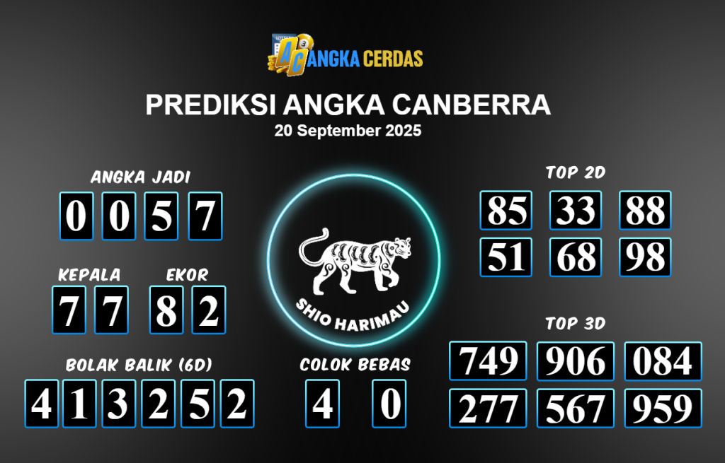 Prediksi Togel CANBERRA untuk hari ini Sabtu 20 September 2025, adalah salah