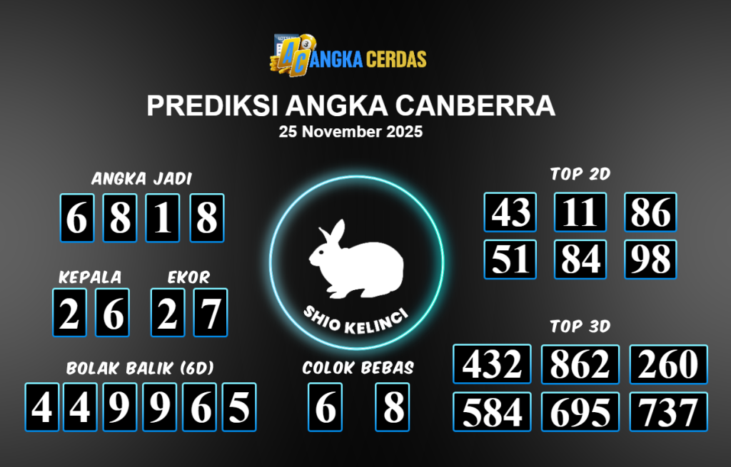 Prediksi Togel CANBERRA untuk hari ini Selasa 25 November 2025, adalah salah