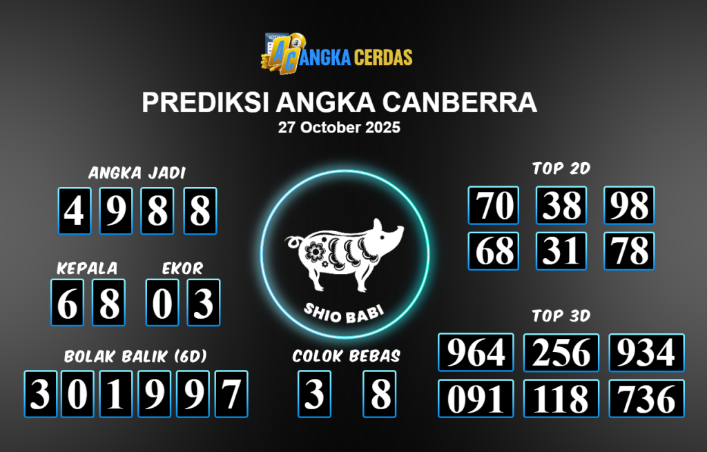 Prediksi Togel CANBERRA untuk hari ini Senin 27 Oktober 2025, adalah salah