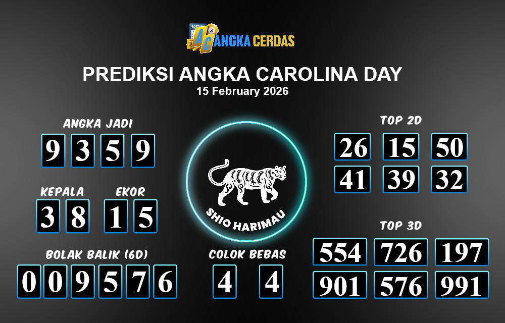 Prediksi Togel CAROLINA DAY untuk hari ini Minggu, 15 Februari 2026, adalah salah