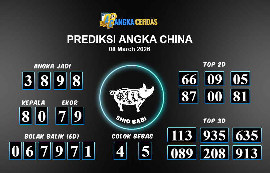 Angka Cerdas : Bocoran Prediksi Togel CHINA Tanggal 08 MARET 2026