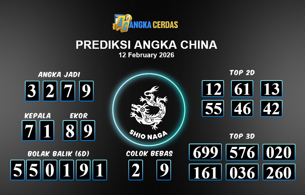 Prediksi Togel CHINA untuk hari ini Kamis, 12 Februari 2026, adalah salah