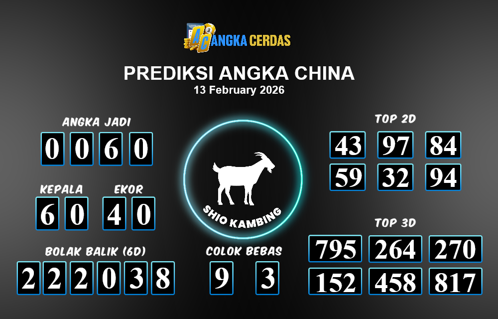 Prediksi Togel CHINA untuk hari ini Jumat, 13 Februari 2026, adalah salah