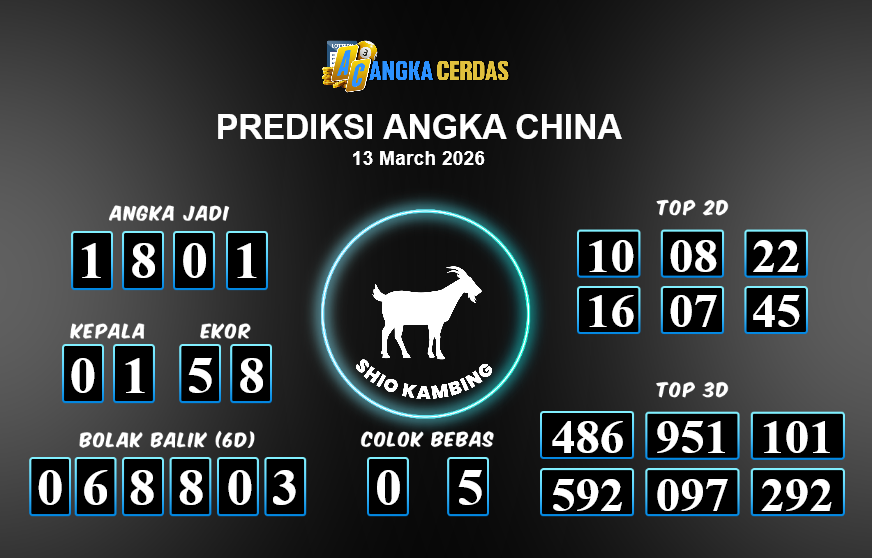 Angka Cerdas : Bocoran Prediksi Togel CHINA Tanggal 13 MARET 2026