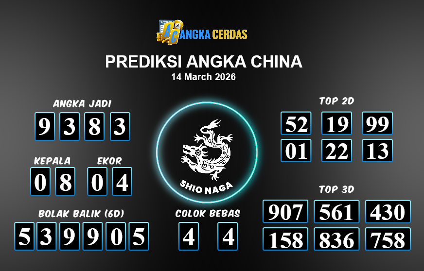 Angka Cerdas : Bocoran Prediksi Togel CHINA Tanggal 14 MARET 2026