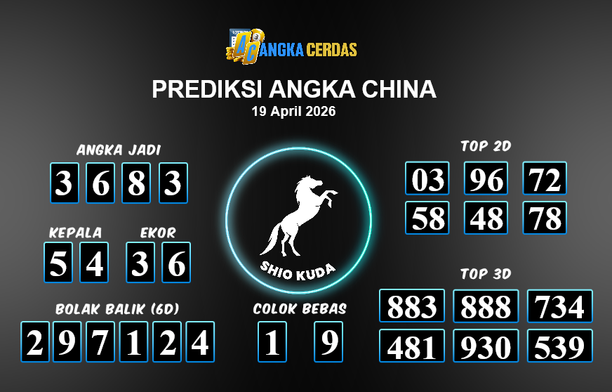Prediksi Togel CHINA untuk hari ini Minggu, 19 April 2026, adalah salahsatu jenis togel yang memiliki banyak penggemar.Ini terutama ditujukanbagi Anda yang menyukai 4d/3d/2d. Prediksi Angka Cerdas yang kamisediakan,bisa