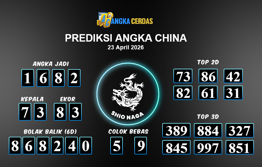 Prediksi Togel CHINA untuk hari ini Kamis, 23 April 2026, adalah salahsatu jenis togel yang memiliki banyak penggemar.Ini terutama ditujukanbagi Anda yang menyukai 4d/3d/2d. Prediksi Angka Cerdas yang kamisediakan,bisa
