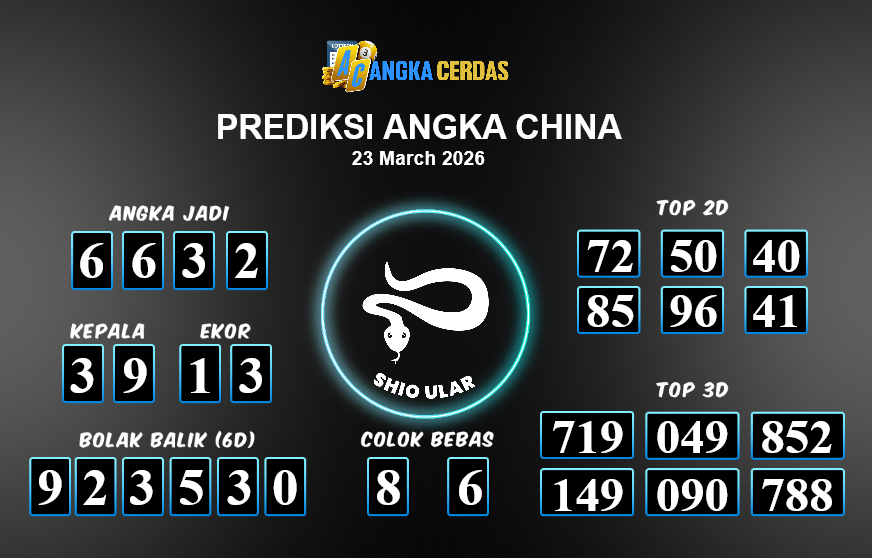 Prediksi Togel CHINA untuk hari ini Senin, 23 Maret 2026, adalah salah