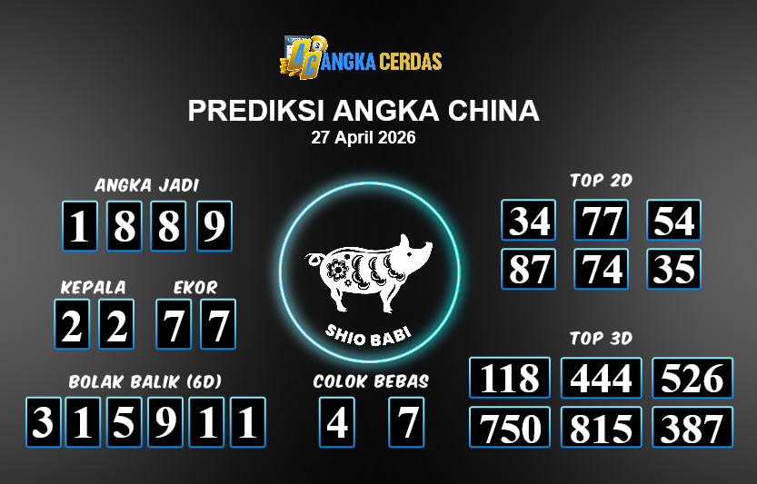 Prediksi Togel CHINA untuk hari ini Senin, 27 April 2026, adalah salahsatu jenis togel yang memiliki banyak penggemar.Ini terutama ditujukanbagi Anda yang menyukai 4d/3d/2d. Prediksi Angka Cerdas yang kamisediakan,bisa