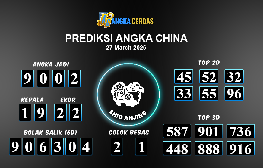Prediksi Togel CHINA untuk hari ini Jumat, 27 Maret 2026, adalah salah