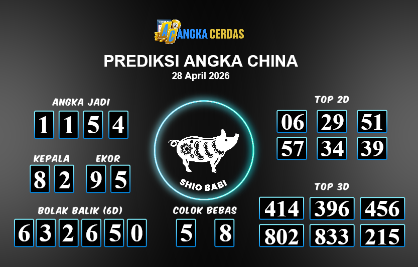 Prediksi Togel CHINA untuk hari ini Selasa, 28 April 2026, adalah salahsatu jenis togel yang memiliki banyak penggemar.Ini terutama ditujukanbagi Anda yang menyukai 4d/3d/2d. Prediksi Angka Cerdas yang kamisediakan,bisa