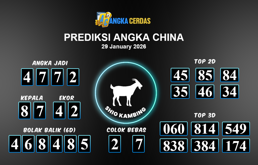 Prediksi Togel CHINA untuk hari ini Kamis 29 Januari 2026,adalah salah