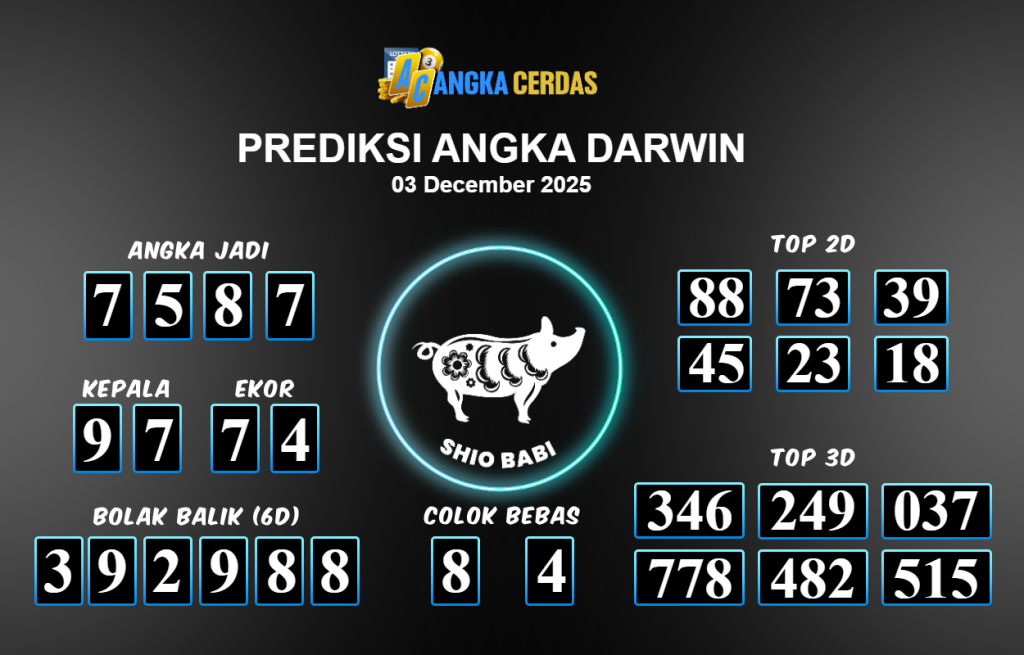 Prediksi Togel DARWIN untuk hari ini Rabu 03 Desember November 2025, adalah salah