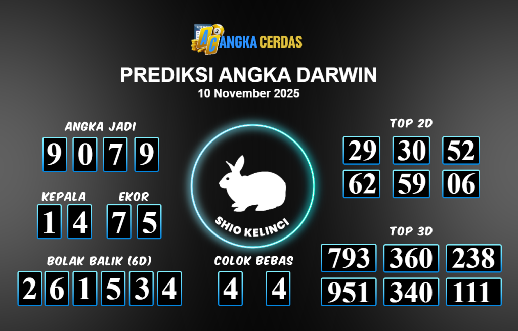 Prediksi Togel DARWIN untuk hari ini Senin 10 November 2025, adalah salah
