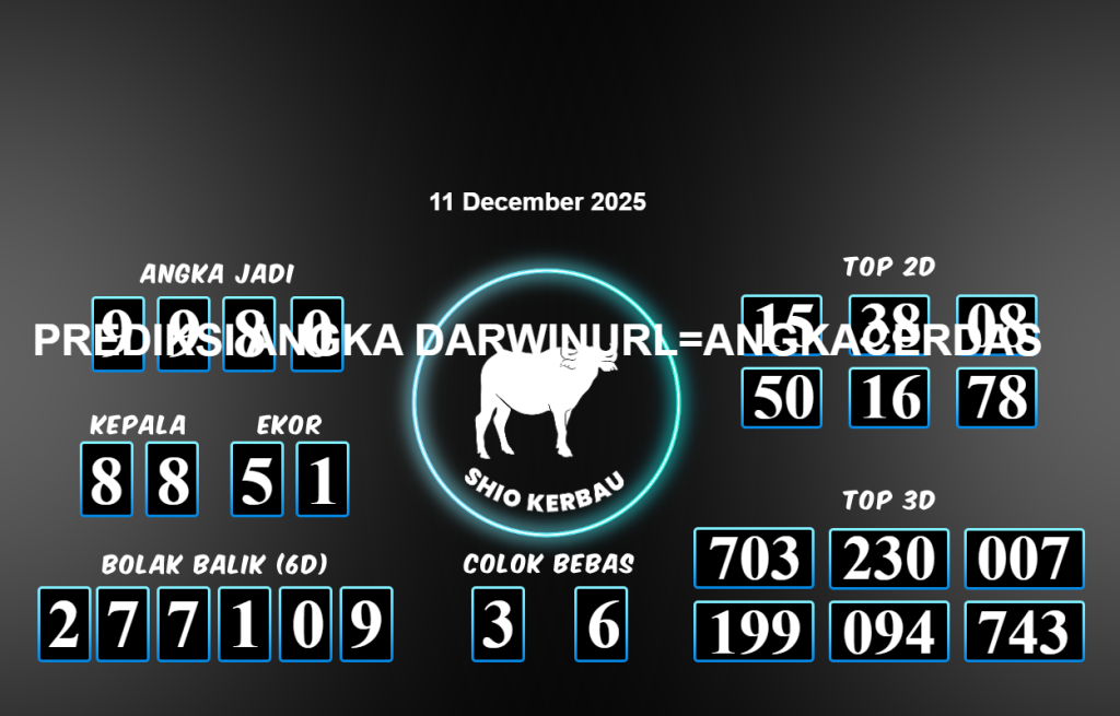 Prediksi Togel DARWIN untuk hari ini Kamis 11 Desember November 2025, adalah salah