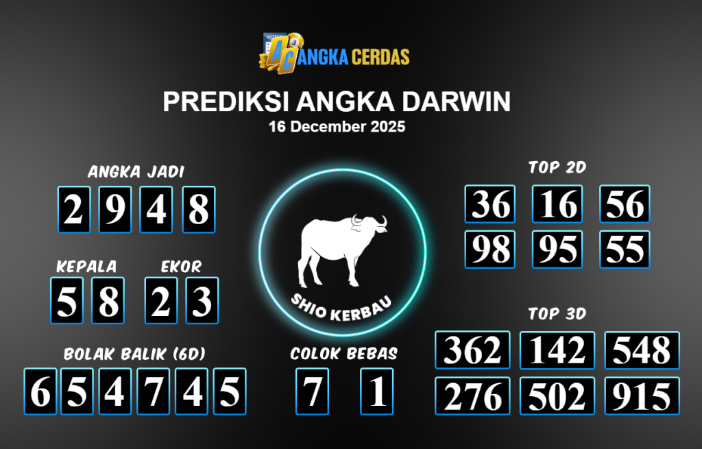 Prediksi Togel DARWIN untuk hari ini Selasa 16 Desember November 2025, adalah salah