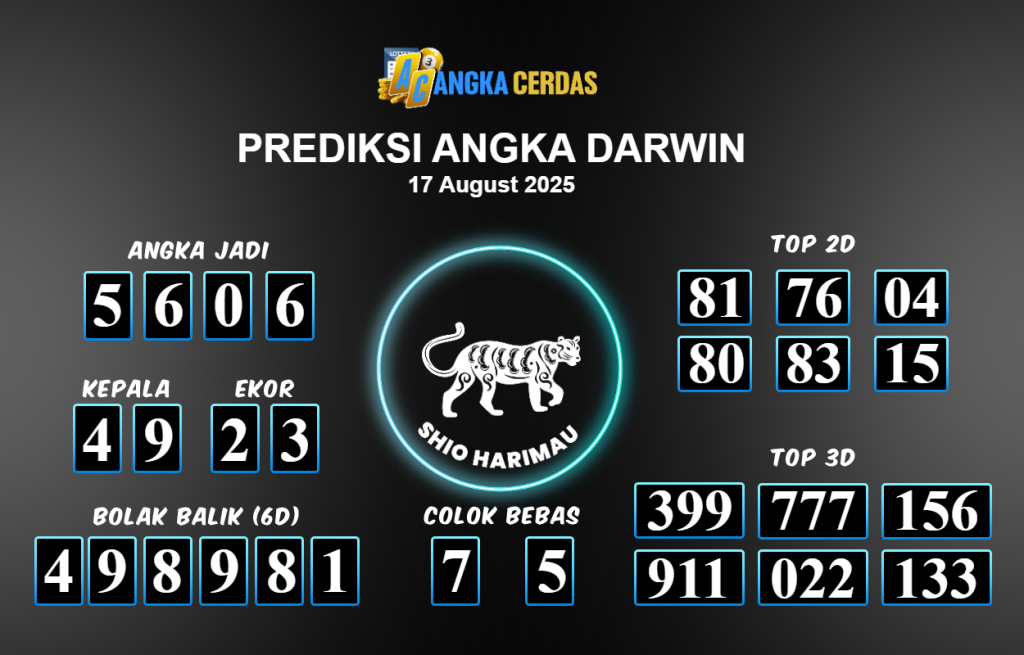 Prediksi Togel DARWIN untuk hari ini Minggu 17 Agustus 2025, adalah salah