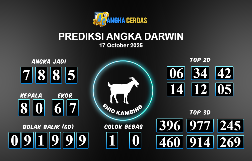 Prediksi Togel DARWIN untuk hari ini Jum’at 17 Oktober 2025, adalah salah