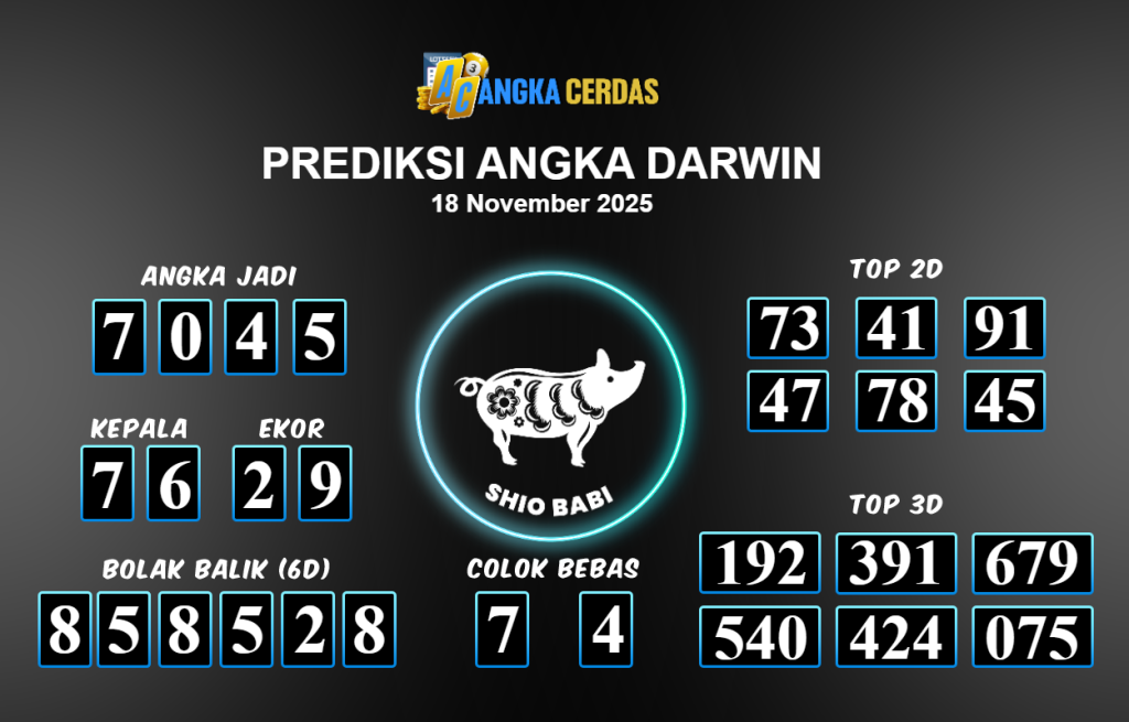 Prediksi Togel DARWIN untuk hari ini Selasa 18 November 2025, adalah salah