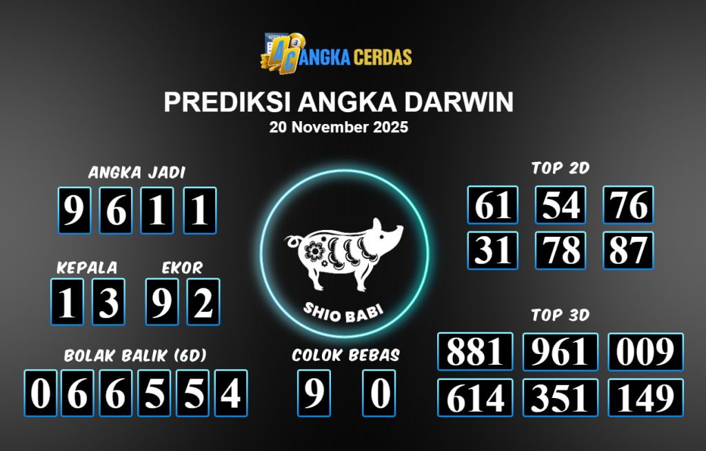 Prediksi Togel DARWIN untuk hari ini Kamis 20 November 2025, adalah salah