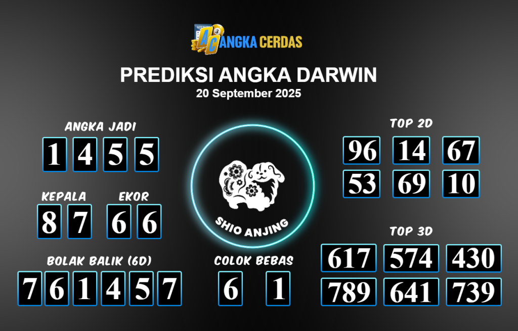 Prediksi Togel DARWIN untuk hari ini Sabtu 20 September 2025, adalah salah