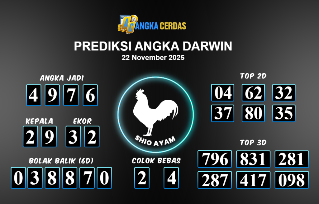 Prediksi Togel DARWIN untuk hari ini Jumat 21 November 2025, adalah salah