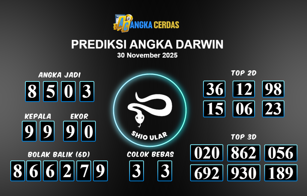Prediksi Togel DARWIN untuk hari ini Minggu 30 November 2025, adalah salah