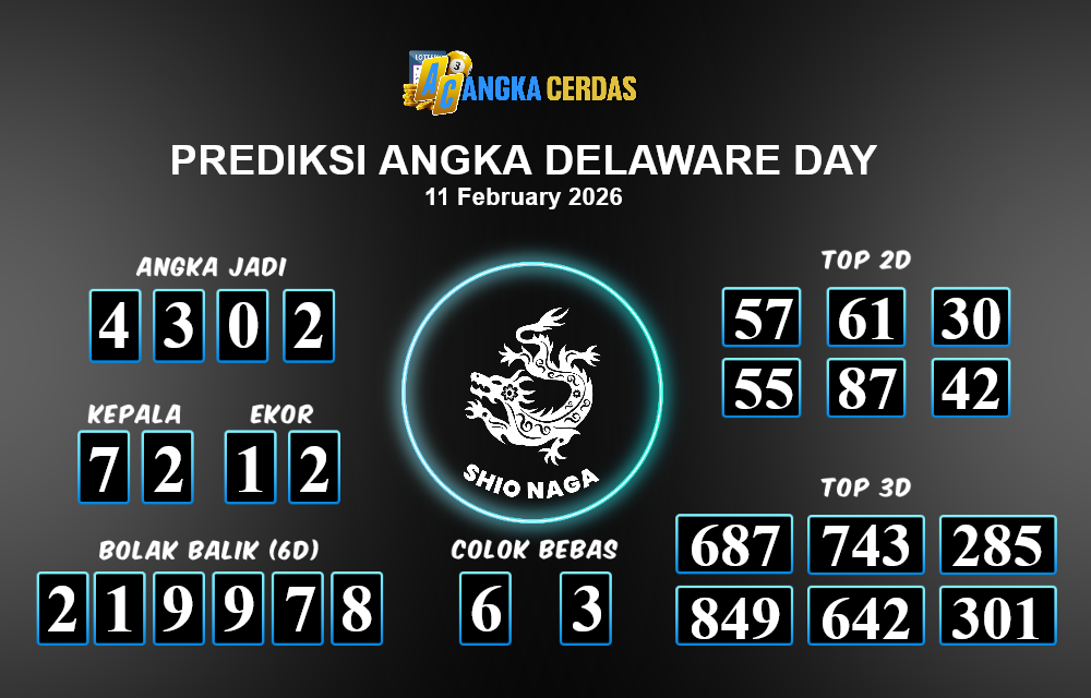 Prediksi Togel DELAWARE DAYuntuk hari ini Rabu, 11 Februari 2026, adalah salah
