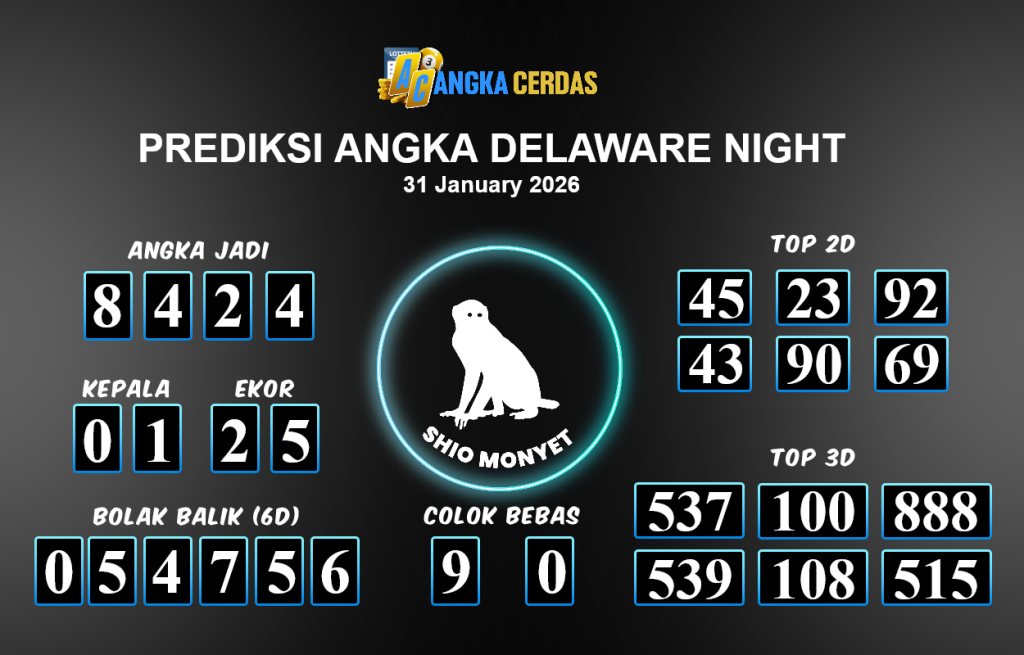 Prediksi Togel DELAWARE NIGHT untuk hari ini Sabtu 31 Januari 2026,adalah salah