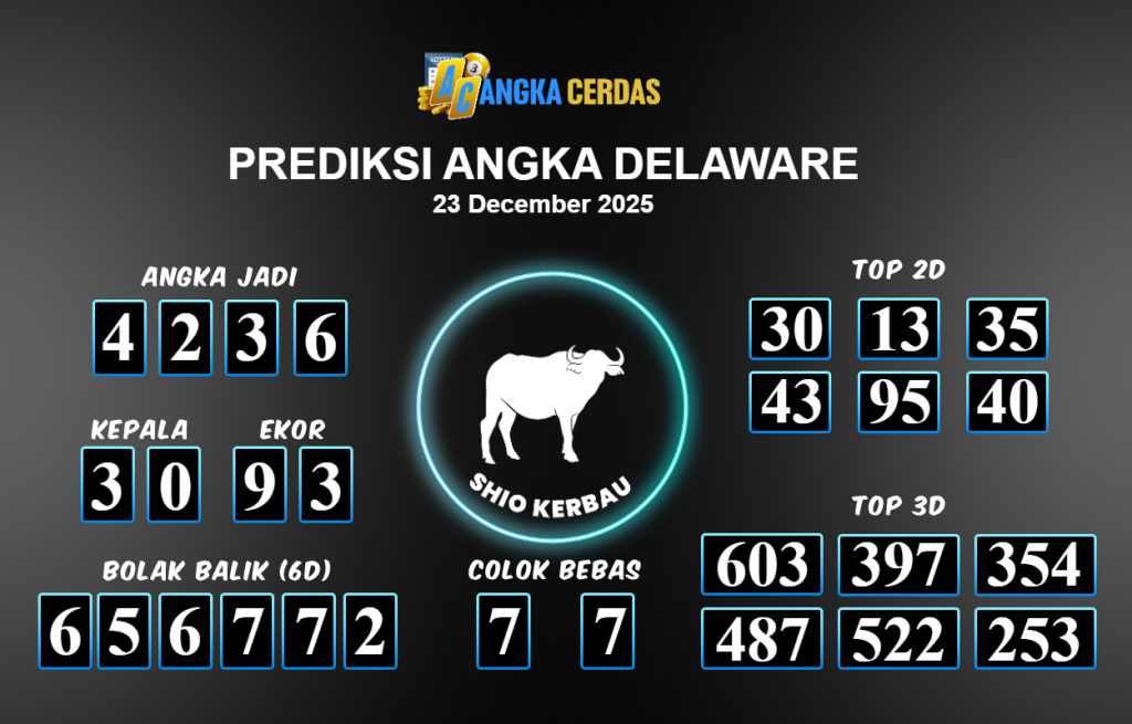 Prediksi Togel DELAWARE untuk hari ini Selasa 23 Desember November 2025, adalah salah