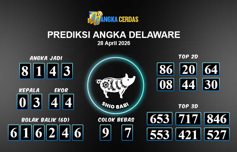 Prediksi Togel DELAWARE untuk hari ini Selasa, 28 April 2026, adalah salahsatu jenis togel yang memiliki banyak penggemar.Ini terutama ditujukanbagi Anda yang menyukai 4d/3d/2d. Prediksi Angka Cerdas yang kamisediakan,bisa
