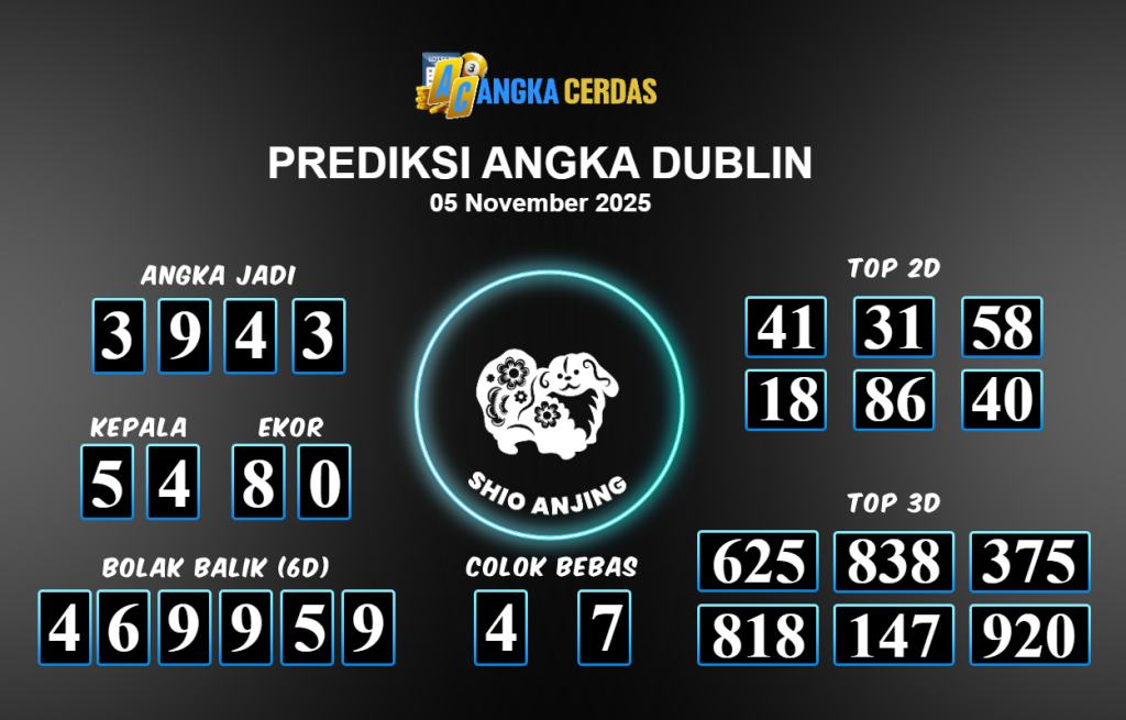 Prediksi Togel DUBLIN untuk hari ini Rabu 05 November 2025, adalah salah