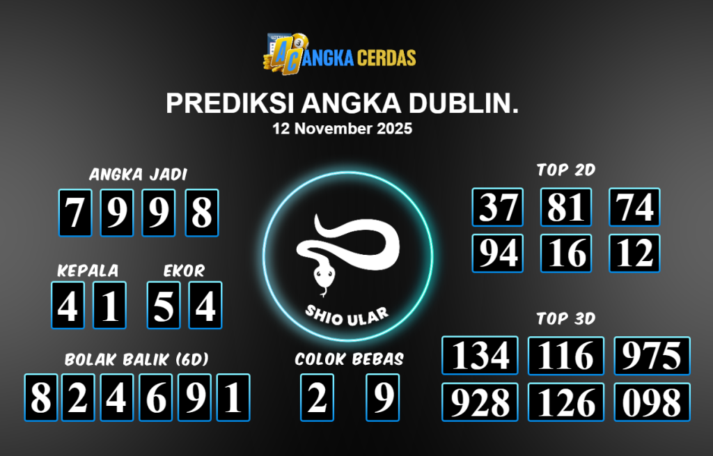 Prediksi Togel DUBLIN untuk hari ini Rabu 12 November 2025, adalah salah