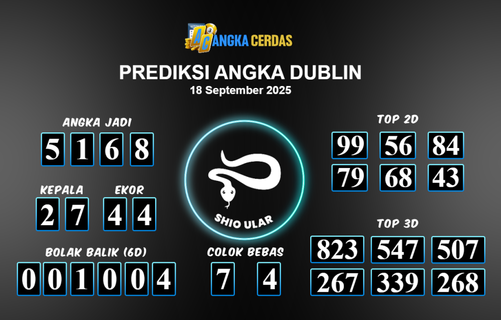 Prediksi Togel DUBLIN untuk hari ini Kamis 18 September 2025, adalah salah