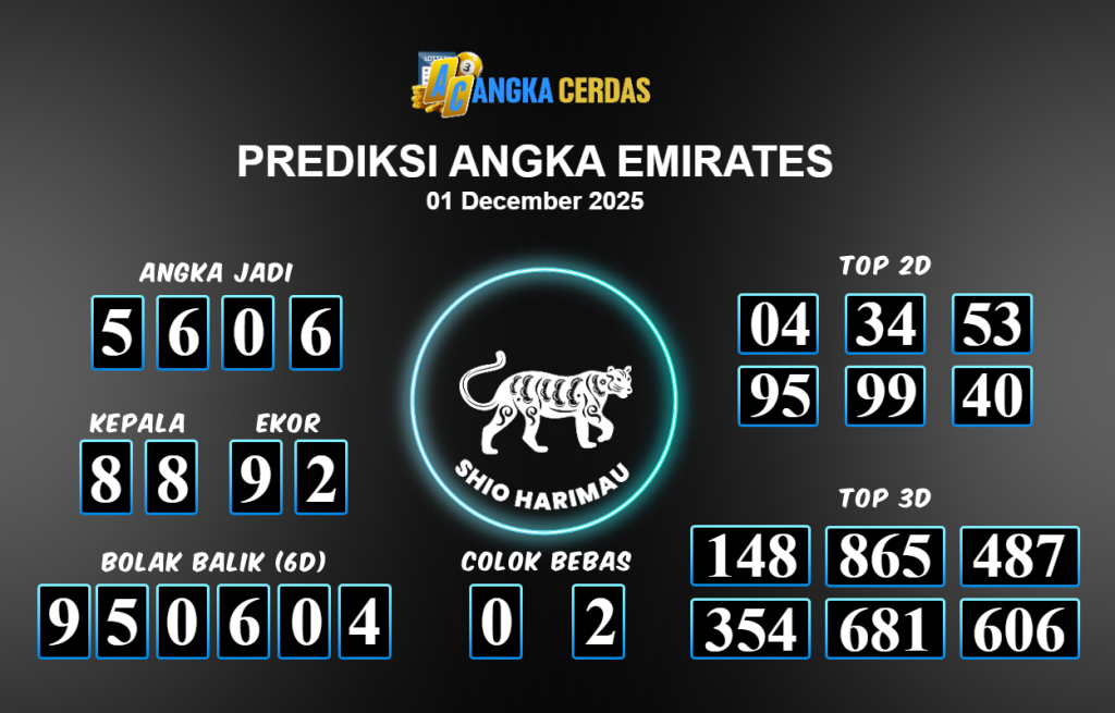 Prediksi Togel EMIRATES untuk hari ini Senin 1 Desember November 2025, adalah salah