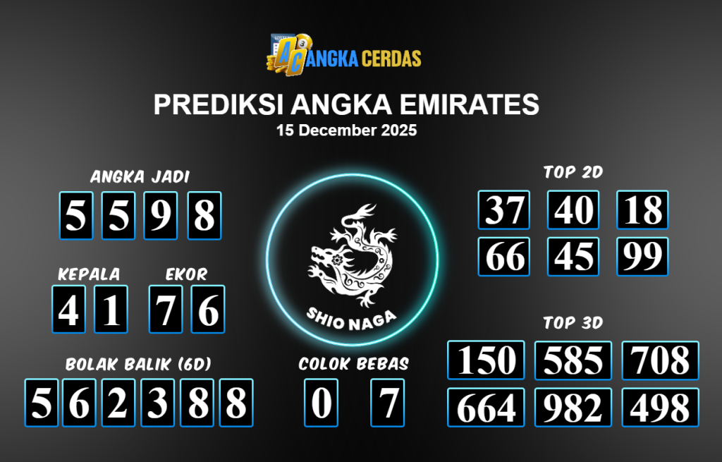 Prediksi Togel EMIRATES untuk hari ini Senin 15 Desember November 2025, adalah salah