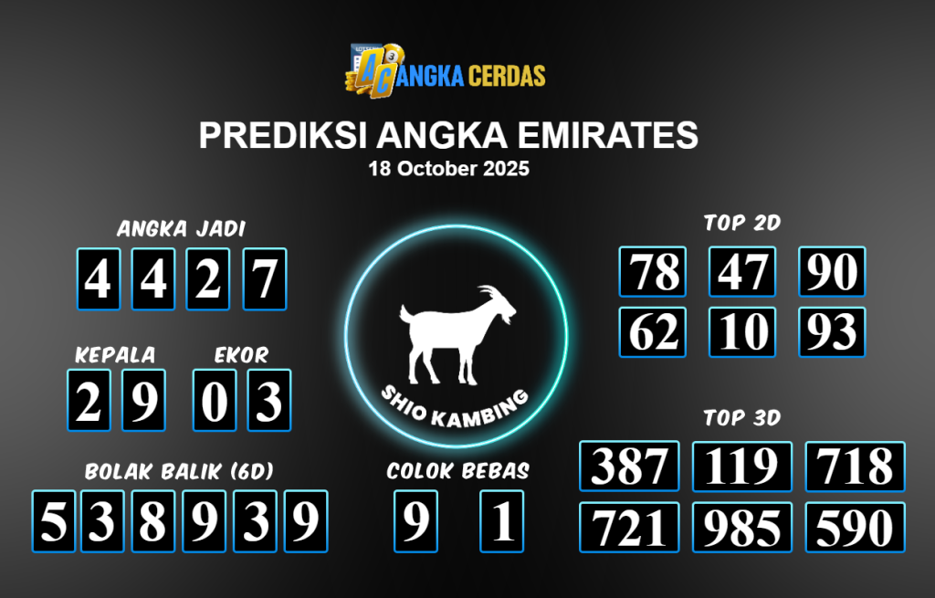 Prediksi Togel EMIRATES untuk hari ini Sabtu 18 Oktober 2025, adalah salah