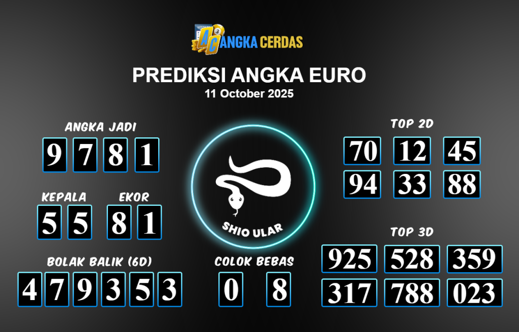 Prediksi Togel EURO untuk hari ini Sabtu 11 Oktober 2025, adalah salah