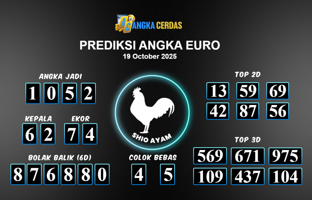Prediksi Togel EURO untuk hari ini Minggu 19 Oktober 2025, adalah salah
