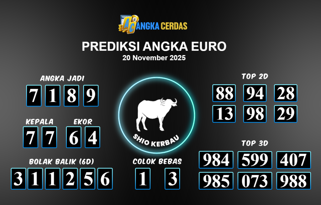 Prediksi Togel EURO untuk hari ini Kamis 20 November 2025, adalah salah